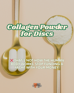- Collagen for spinal discs – your body breaks it down into amino acids not directly into disc repair material
